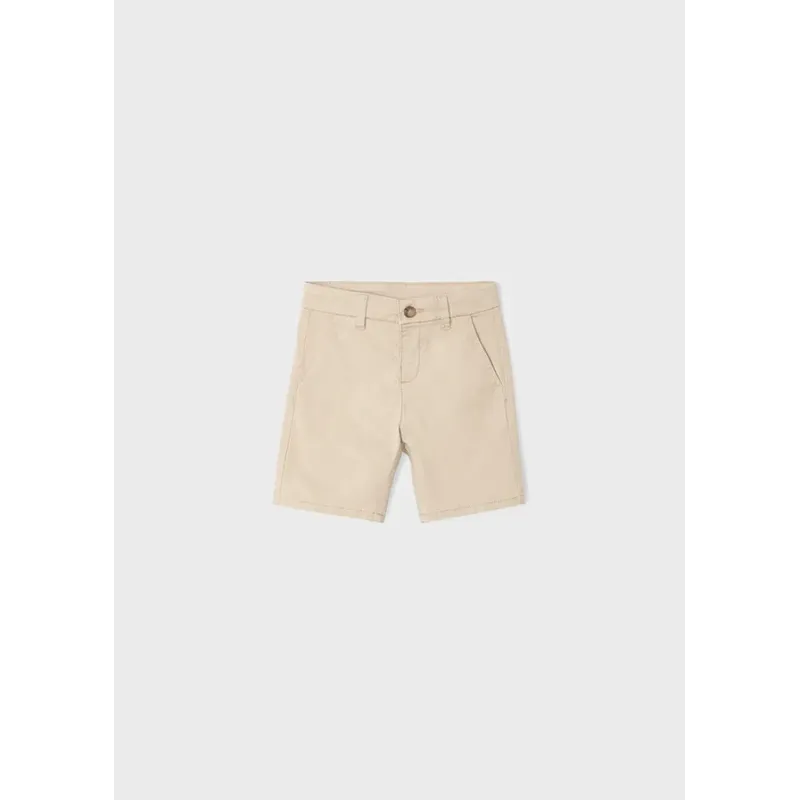 Krótkie spodnie typu chino dla chłopca. Zapięcie na zamek i guzik. Funkcjonalne kieszenie zarówno z przodu jak i z tyłu ubranka. Skład: 98% Bawełna 2% Elastan