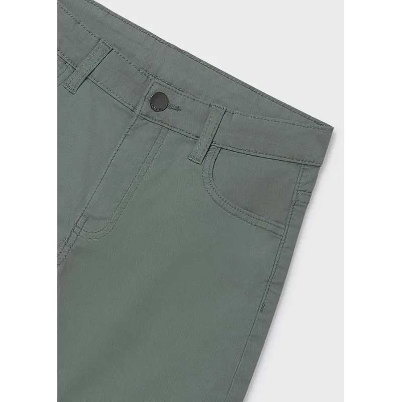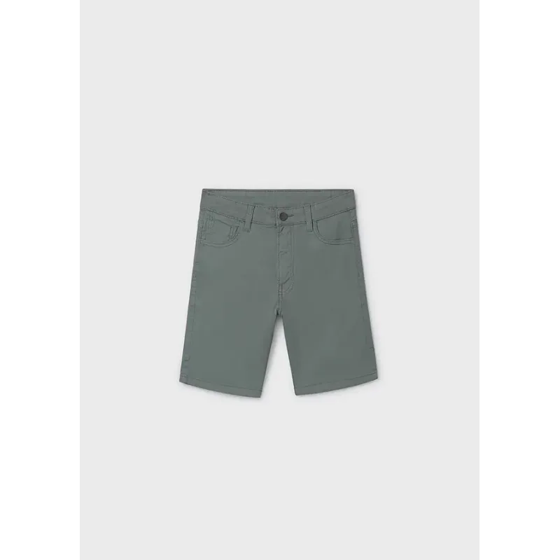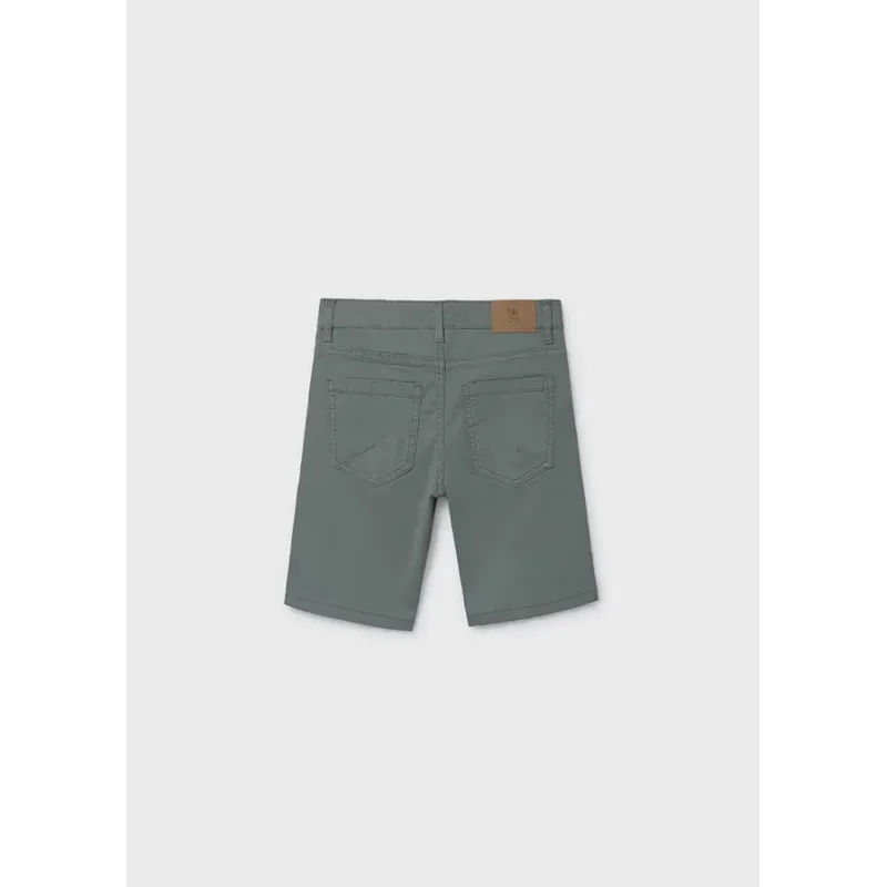 Krótkie spodnie typu bermudy dla chłopca Baby. Imitacja rozporka. Pasek z elastyczną gumą i guzikiem. Wygodna i trwała tkanina z serży. Ze szlufkami w pasie. Model z pięcioma kieszeniami. Model gładki. Skład: 98% Bawełna 2% Elastan