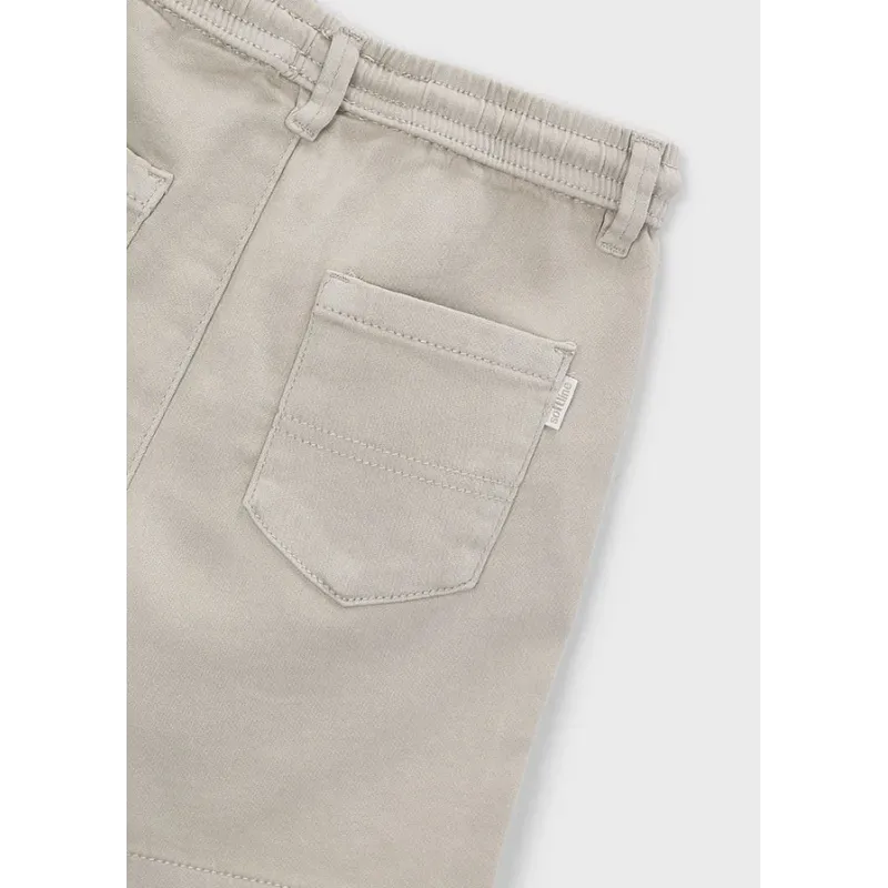 Krótkie spodnie typu bermudy dla chłopca. Zapięcie na zamek i guzik. Funkcjonalne kieszenie zarówno z przodu jak i z tyłu ubranka. Klasyczny, miękki materiał. Spodenki posiadają regulację w pasie. Skład: 98% Bawełna, 2% Elastan