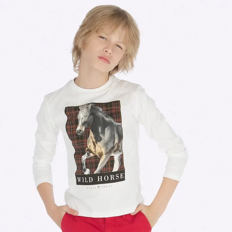 Koszulka z długim rękawem dla chłopca. Okrągły dekolt. Koszulka wykonana ze 100% bawełny. Model z nadrukiem.