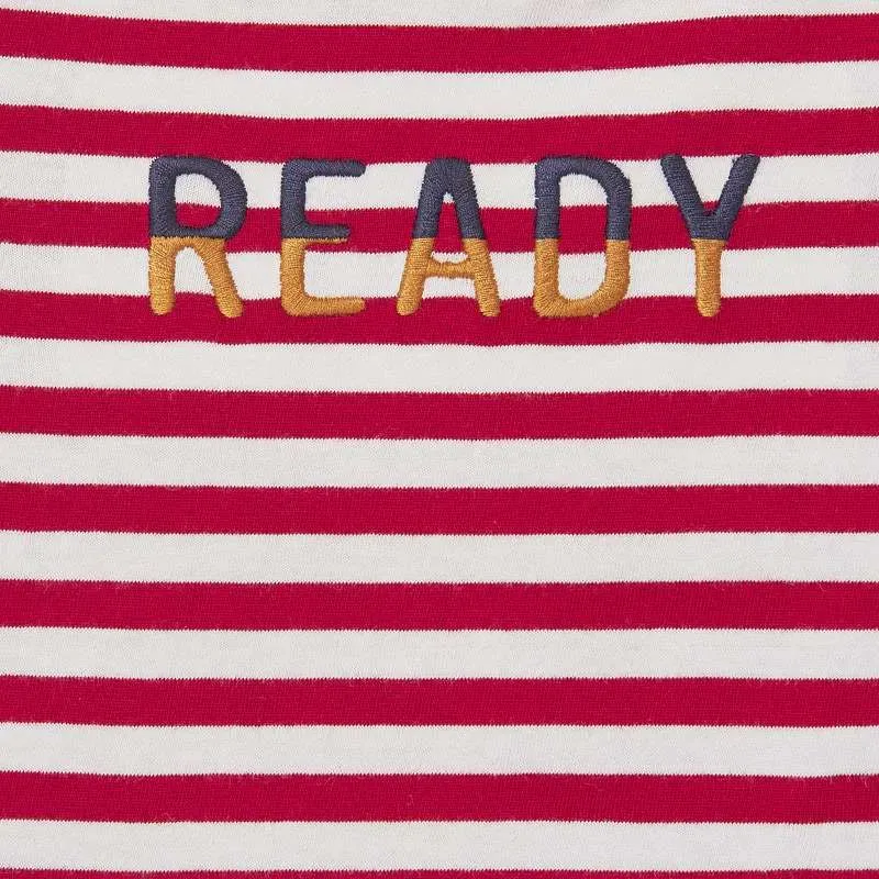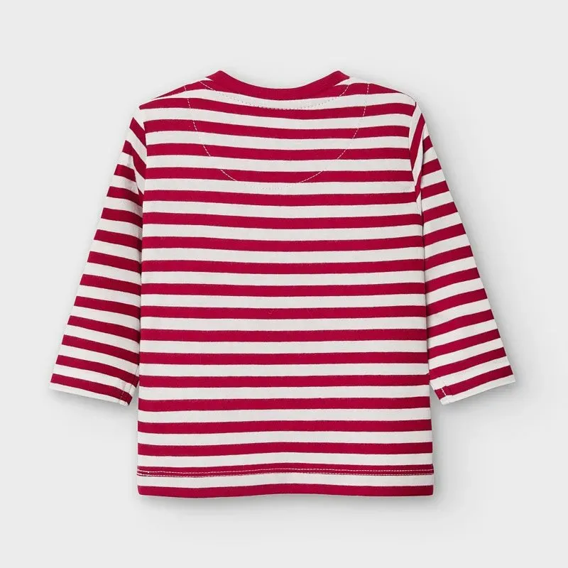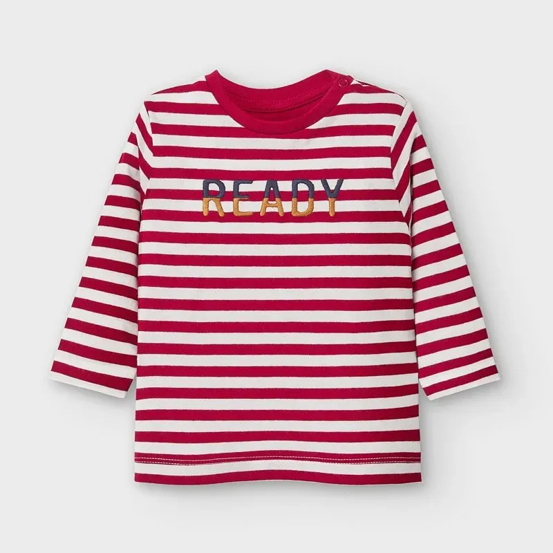 Koszulka z długim rękawem dla chłopca Baby. Okrągły dekolt. Zapięcie na małe zatrzaski na ramieniu, które ułatwiają założenie ubranka. Ubranko wykonane ze 100% bawełny. Ozdoby: elementy w kontrastowym kolorze. Motyw w paski.