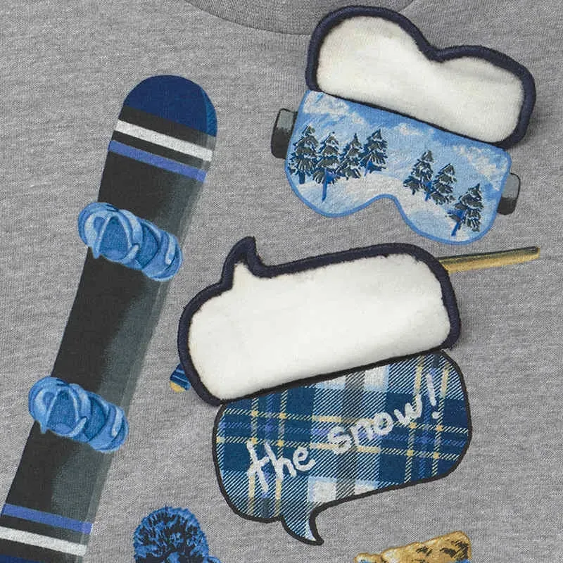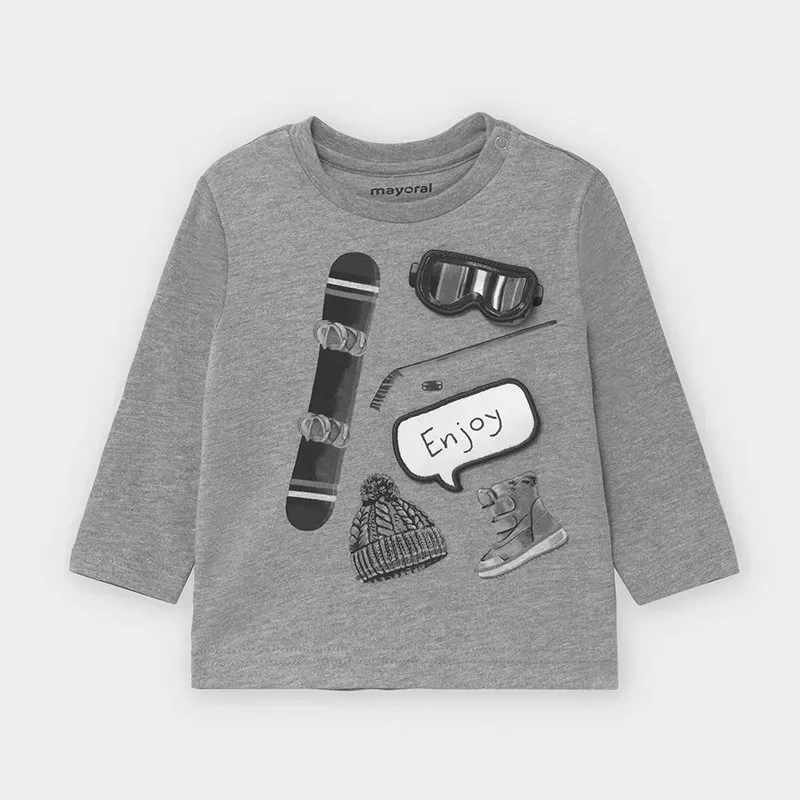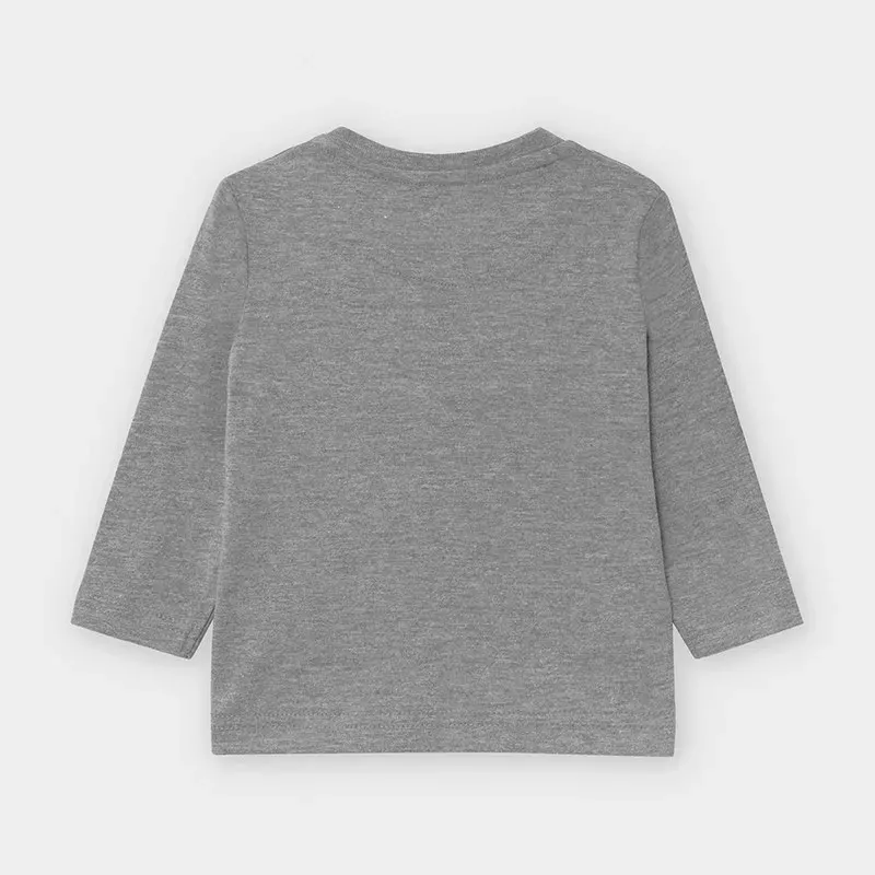 Koszulka z długim rękawem dla chłopca Baby. Okrągły dekolt. Zapięcie na małe zatrzaski na ramieniu, które ułatwiają założenie ubranka. Ubranko wykonane ze 100% bawełny. Ozdoby: grafika na przodzie.