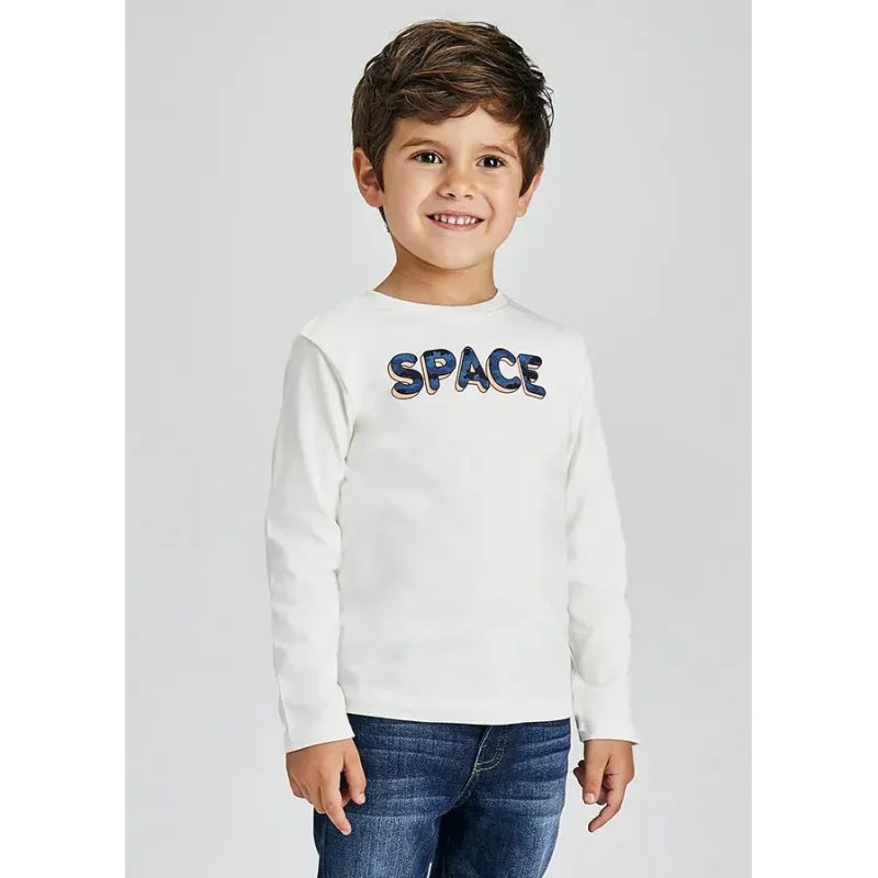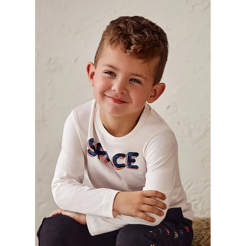 Koszulka z długim rękawem dla chłopca. Okrągły dekolt. Koszulka wykonana ze 100% bawełny. Model z napisem.