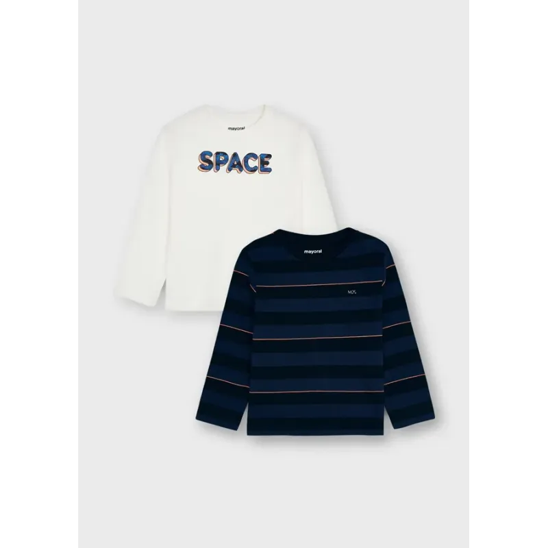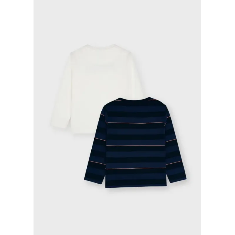Zestaw dwóch koszulek z długim rękawem dla chłopca. Okrągły dekolt. Ubranko wykonane ze 100% bawełny. Ozdoby: grafika na przodzie.