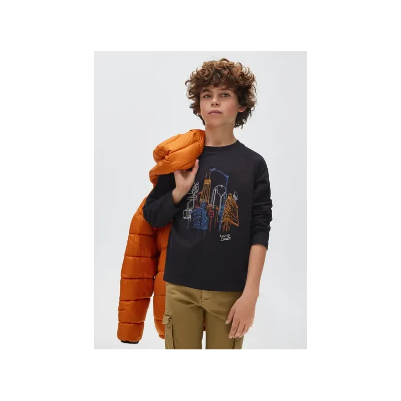 Ubranko ECOFRIENDS, zawiera bawełnę zrównoważoną. Koszulka z długim rękawem dla niemowlęcia. Zapięcie na małe zatrzaski na ramieniu, które ułatwiają założenie ubranka. Artykuł wykonany ze 100% bawełny. Ozdoby: grafika na przodzie.