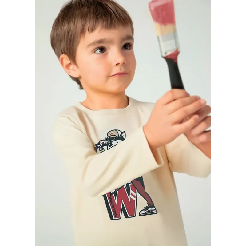 Koszulka z długim rękawem dla chłopca. Okrągły dekolt. Koszulka wykonana ze 100% bawełny. Model z nadrukiem.