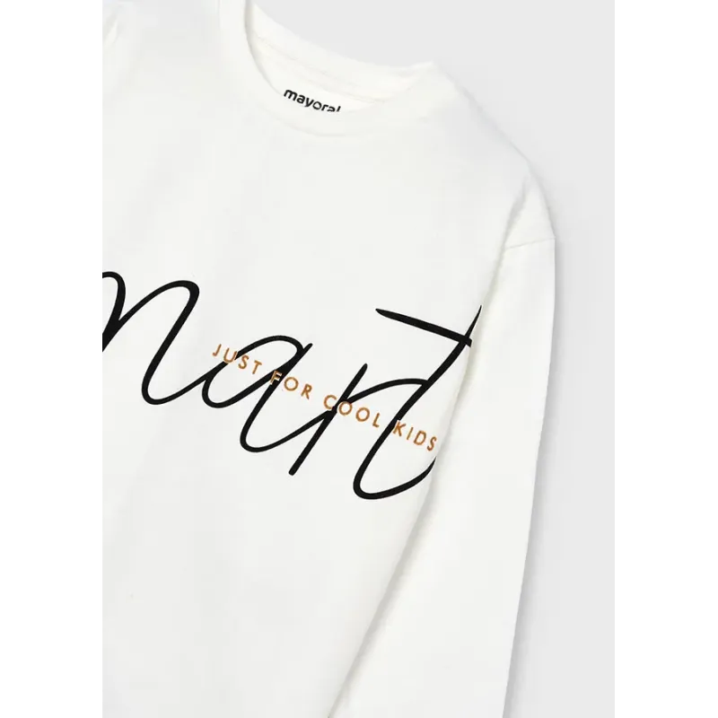 Koszulka z długim rękawem dla chłopca. Okrągły dekolt. Koszulka wykonana ze 100% bawełny. Model z napisem.