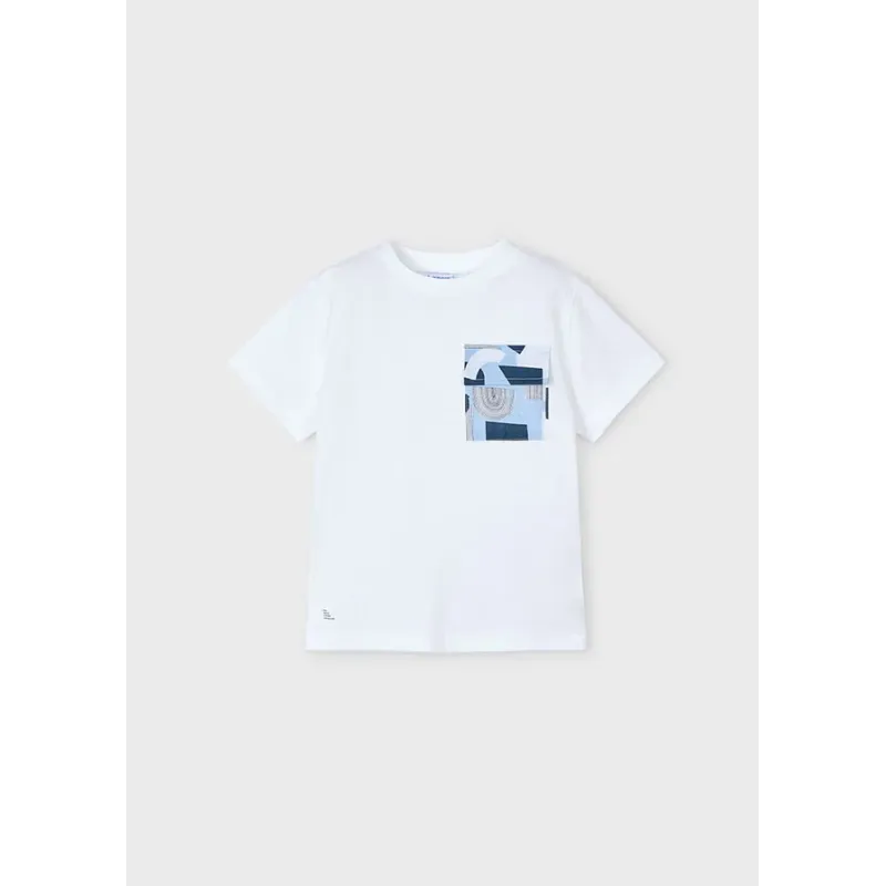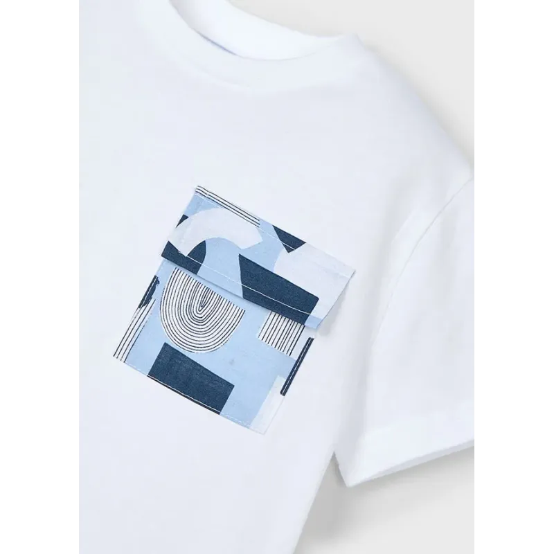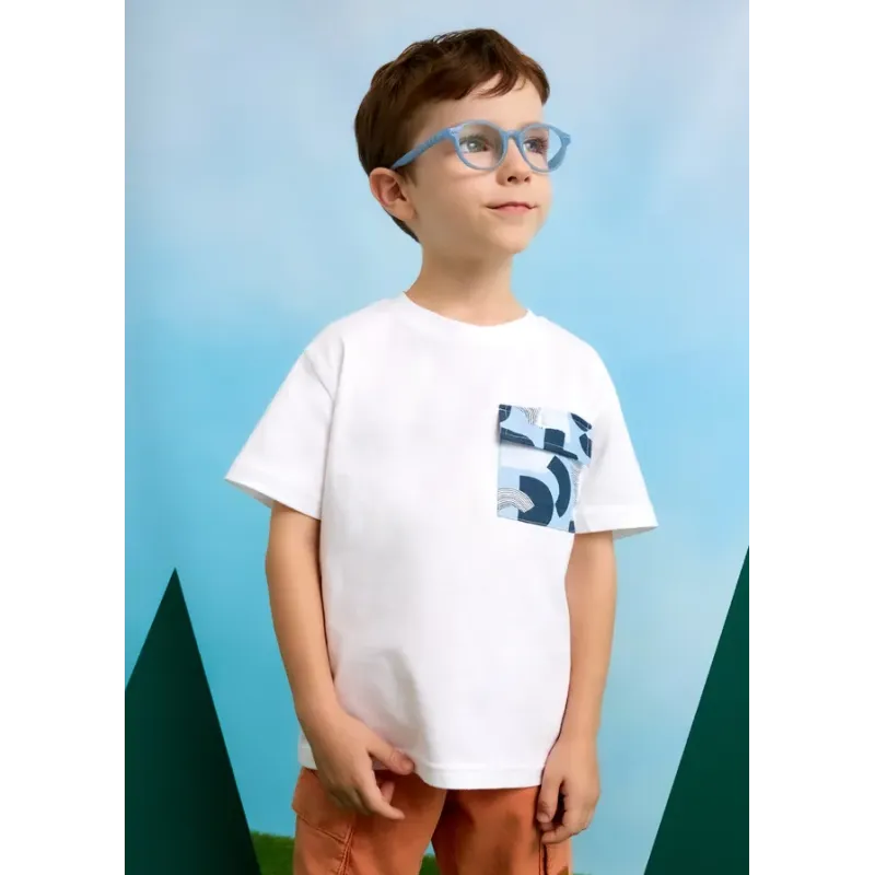 Koszulka z krótkim rękawem dla chłopca. Artykuł wykonany ze 100% bawełny. Model gadki z kontrasową kieszonką na piersi.