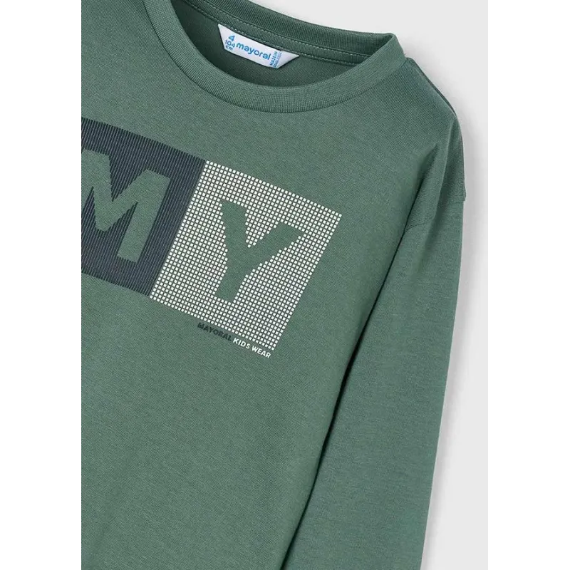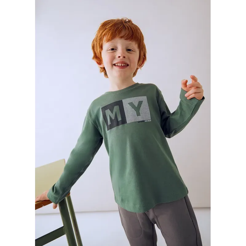 Koszulka z długim rękawem dla chłopca. Okrągły dekolt. Koszulka wykonana ze 100% bawełny. Model z nadrukiem.