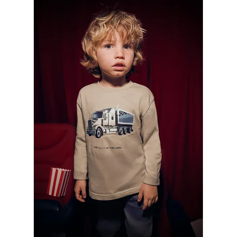 Koszulka z długim rękawem dla chłopca. Okrągły dekolt. Koszulka wykonana ze 100% bawełny. Model z nadrukiem.