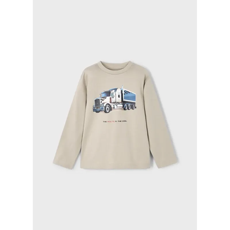 Koszulka z długim rękawem dla chłopca. Okrągły dekolt. Model z nadrukiem. Koszulka wykonana ze 100% bawełny.