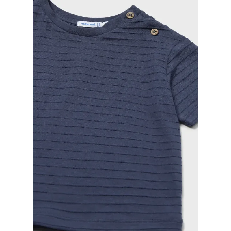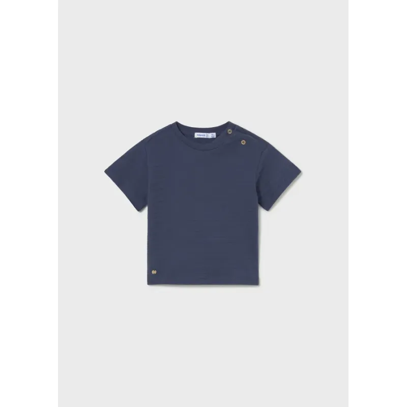 Koszulka z krótkim rękawem dla chłopca. Artykuł wykonany z prążkowanej bawełny. Model gładki. Skład: 60% Bawełna, 40% Poliester.