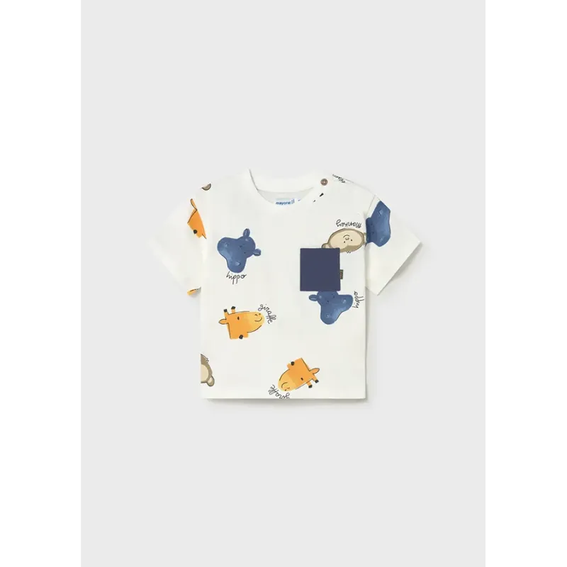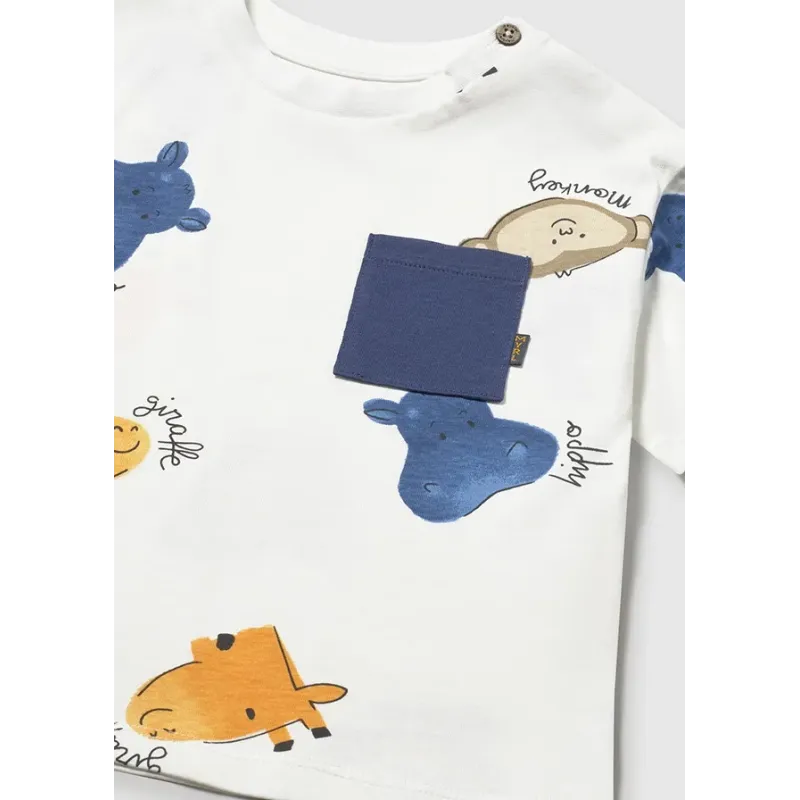 Koszulka z krótkim rękawkiem z kieszonką dla chłopca. Skład: 95% Bawełna, 5% Elastan.