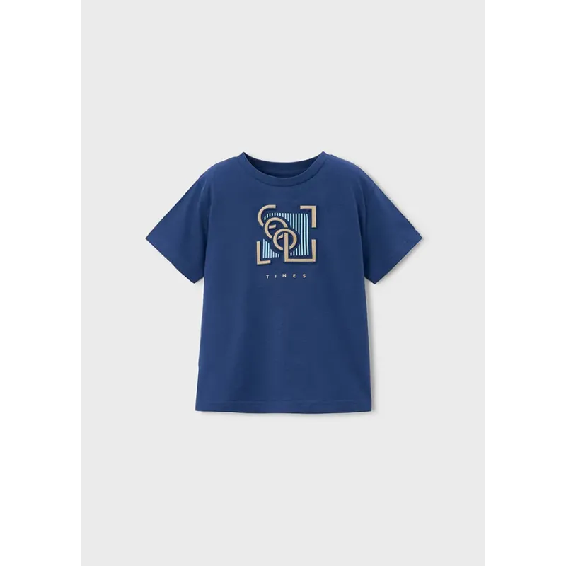 Koszulka chłopięca z bawełny BCI z wytłaczaną grafiką na przodzie. Okrągły dekolt. Delikatna i elastyczna bawełna.