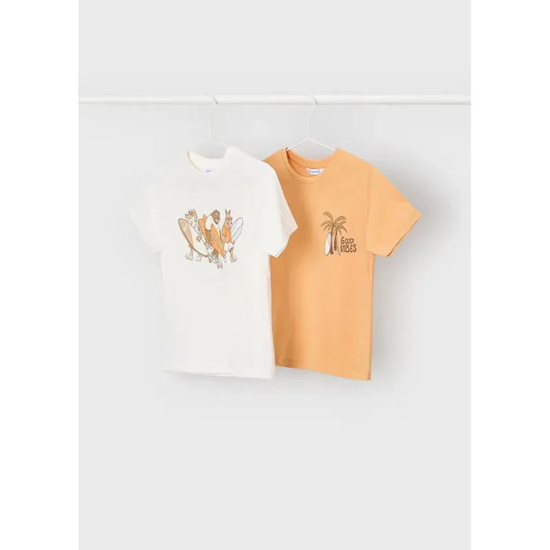 Komplet dwóch koszulek z krótkim rękawkiem dla chłopca. Skład: 100% Bawełna.