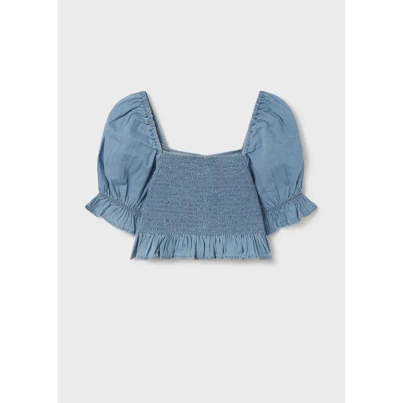 Krótka koszulka z bufiastym, krótkim rękawkiem dla dziewczynki. Skład: 100% Poliester.
