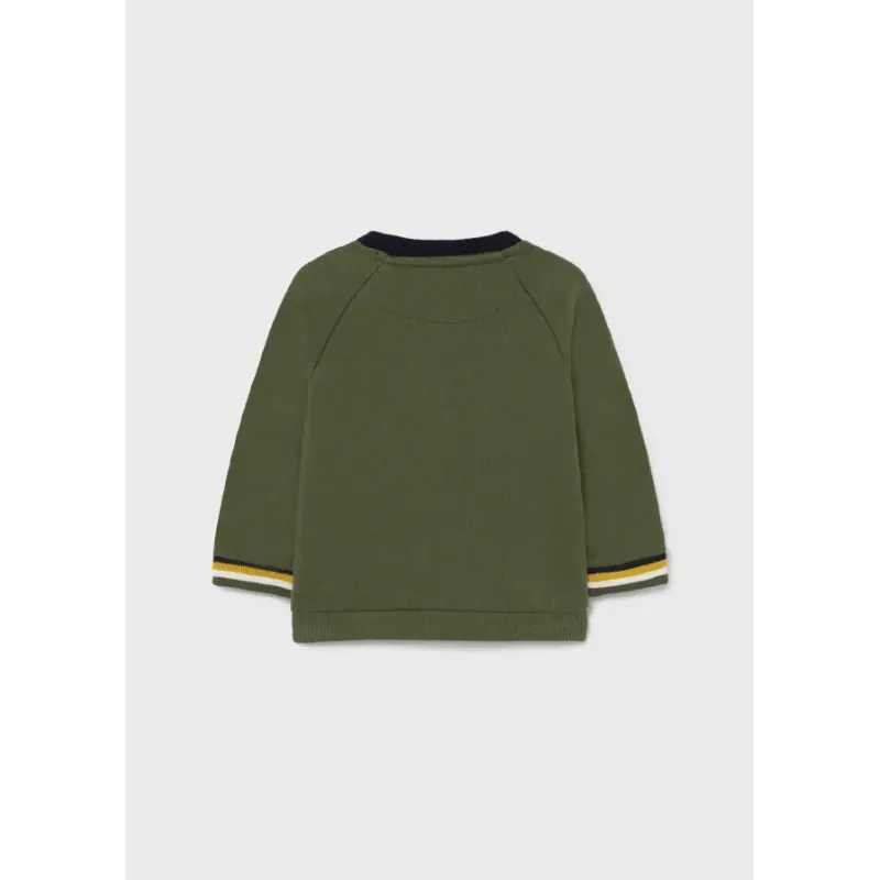 Bluza dzianinowa z długim rękawem dla chłopca. Półgolf. Zapięcie na środku na zamek błyskawiczny. Delikatna i elastyczna bawełna. Ściągacze w kontrastowych kolorach.