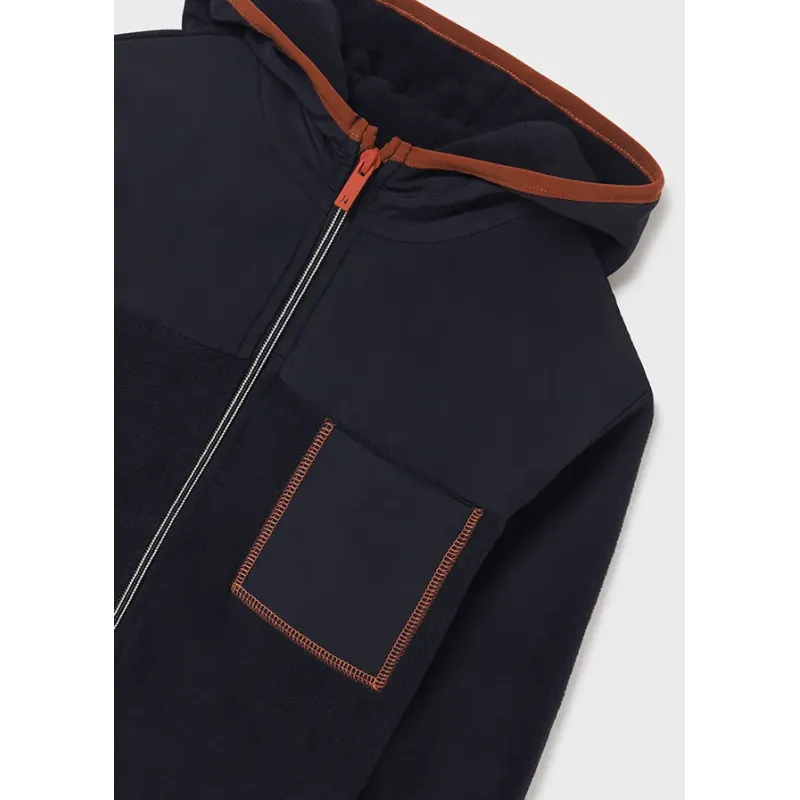 Rozpinana bluza z kapturem dla chłopca. Skład: 76% Bawełna, 23% Poliester, 1% Elastan.