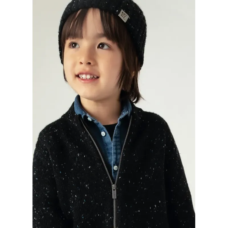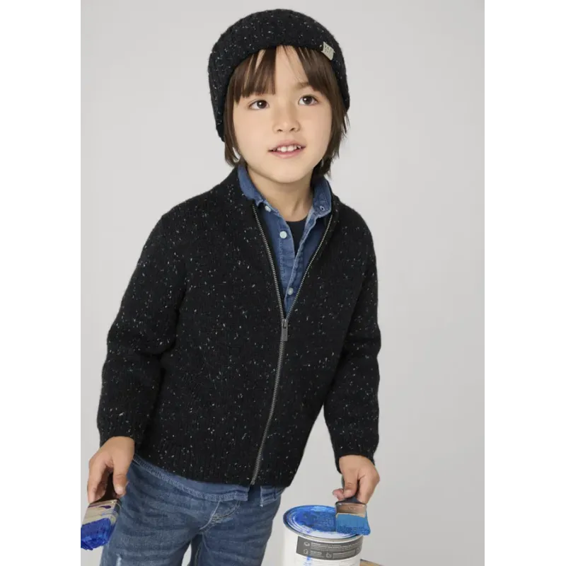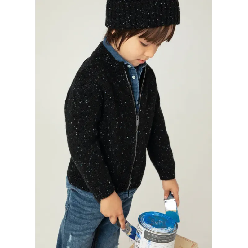 Ciepła bluza dzianinowa z długim rękawem dla chłopca. Okrągły dekolt. Zapięcie na środku na zamek błyskawiczny. Trykotowa dzianina, delikatna i przyjemna w dotyku. Skład: 60% Akryl, 30% Poliester, 10% Wełna.
