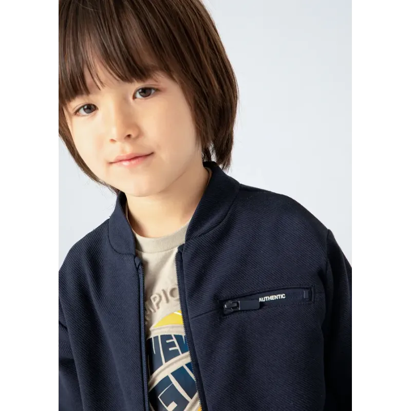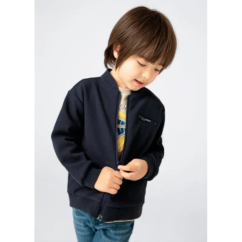 Rozpinana bluza bomberka dla chłopca. Skład: 55% Poliester, 44% Bawełna, 1% Elastan.