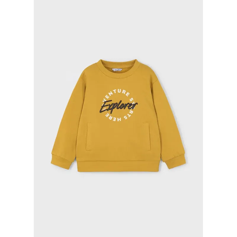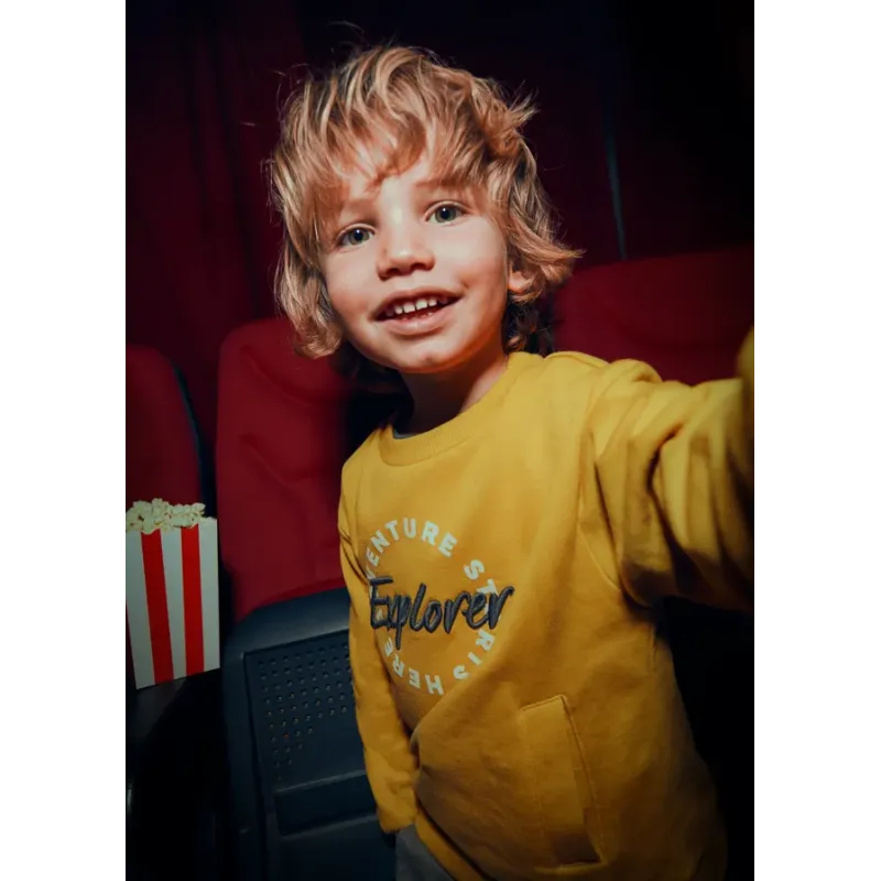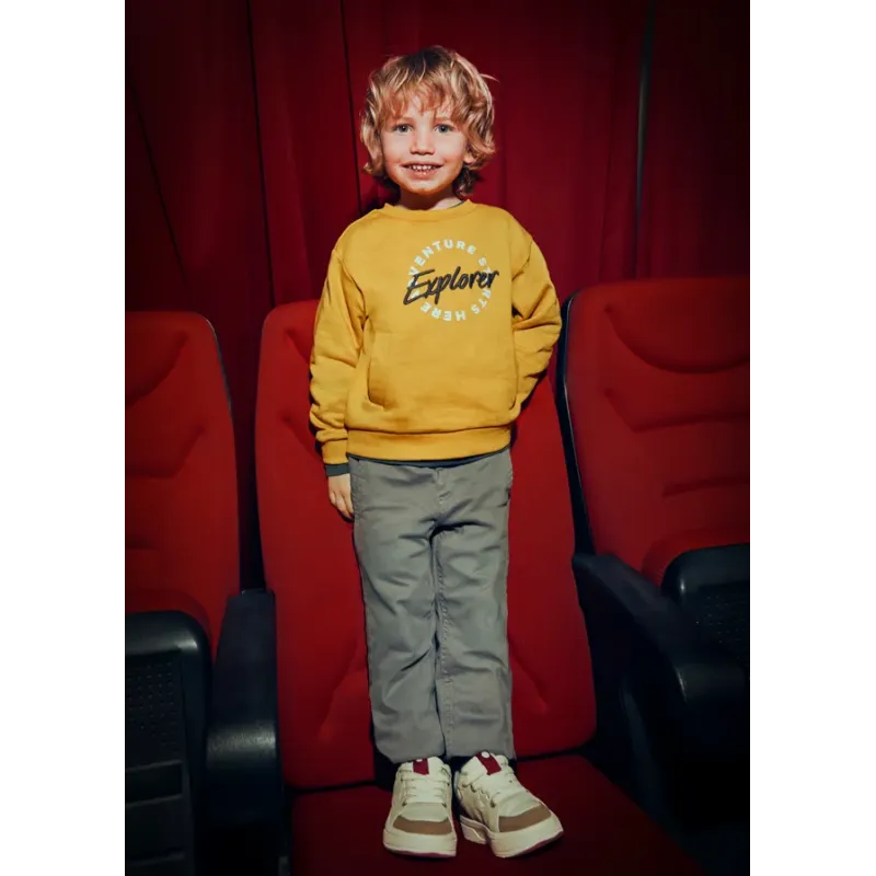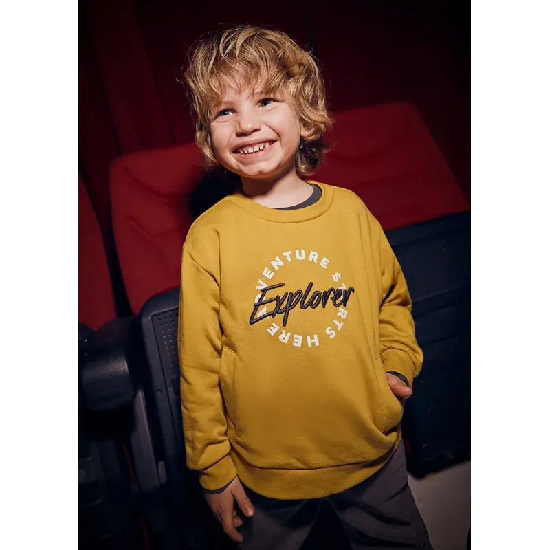 Bluza dla chłopca ze ściągaczami. Okrągły dekolt. Dół z elastyczną gumką dla lepszego dopasowania. Bluza bez kaptura, z kieszeniami. Wytłoczenia i napisy na przodzie. Skład: 99% Bawełna, 1% Elastan.