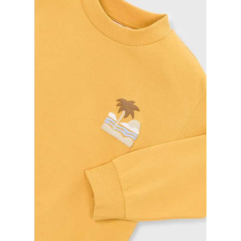 Bluza z długim rękawem dla chłopca. Okrągły dekolt. Ubranko z kapturem w kontrastowym kolorze. Z przodu funkcjonalna kieszeń. Ozdoby: grafika na przodzie.