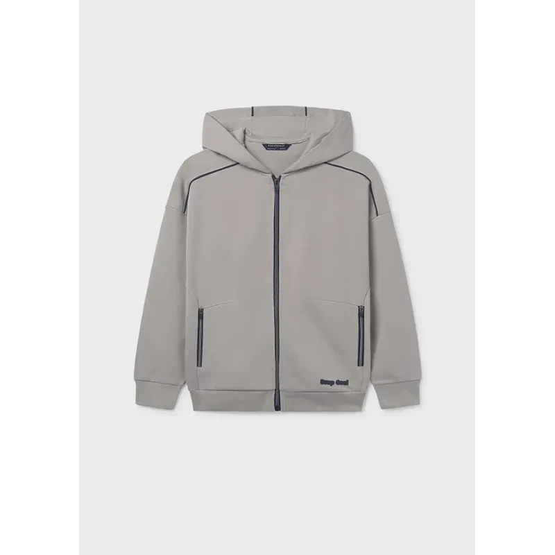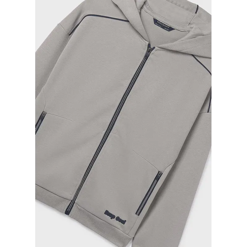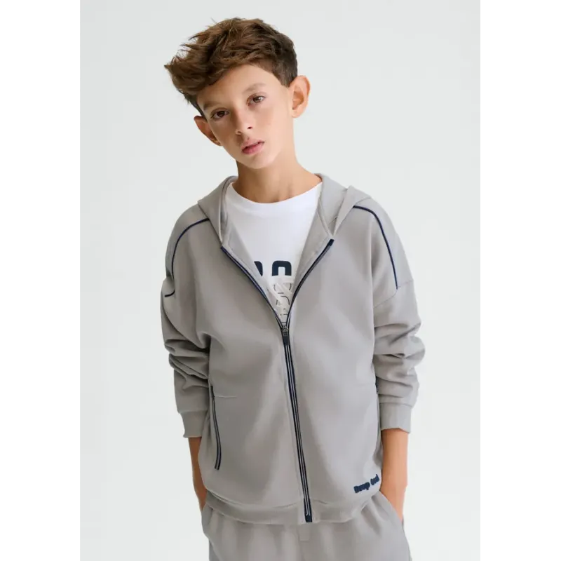 Rozpinana bluza z kapturem dla chłopca. Skład: 76% Bawełna, 23% Poliester, 1% Elastan.