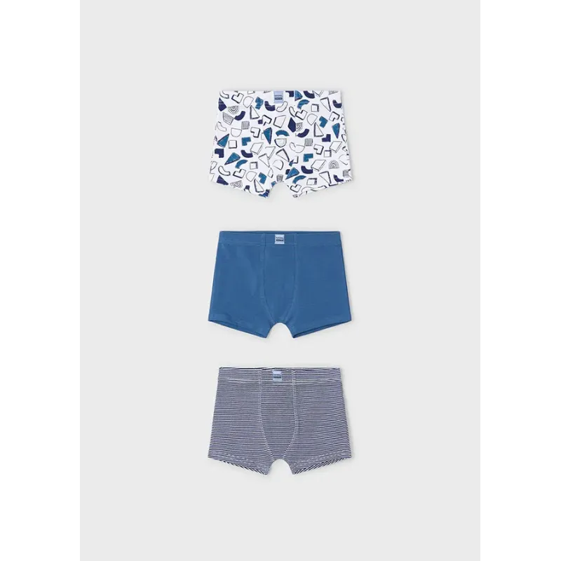 Zestaw trzech par bokserek dla chłopca. Skład: 95% Bawełna, 5% Elastan.