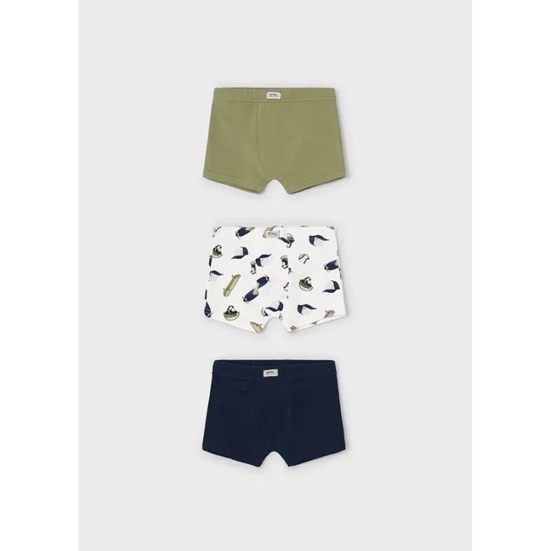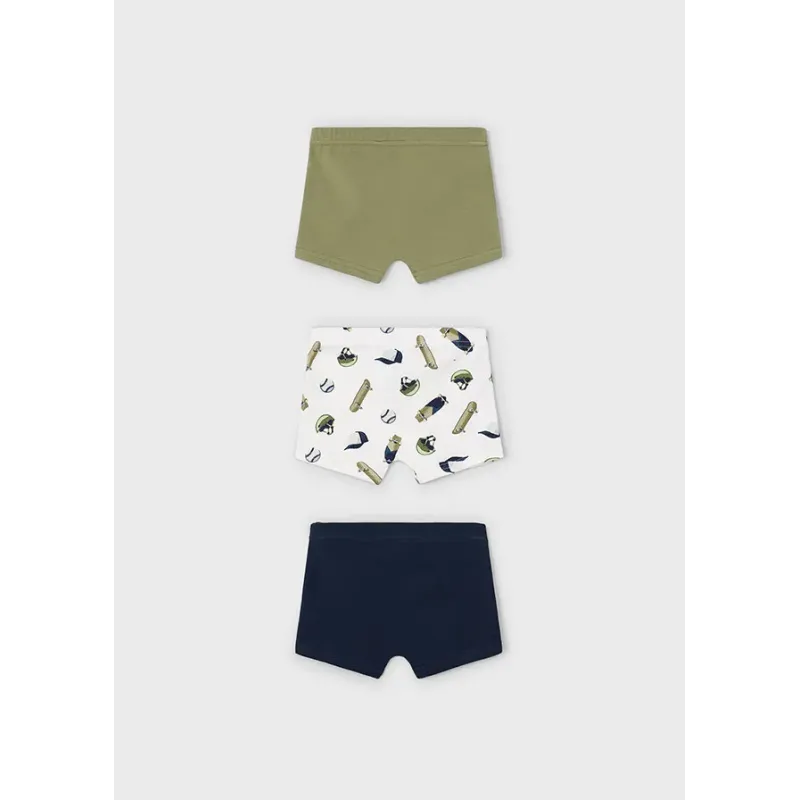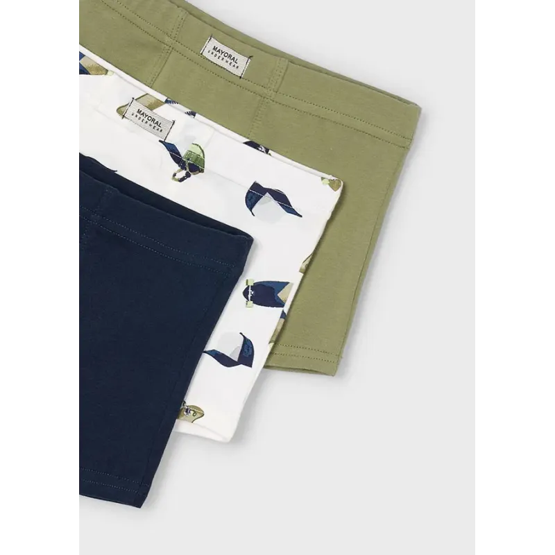 Zestaw trzech par bokserek dla chłopca. Skład: 95% Bawełna, 5% Elastan.