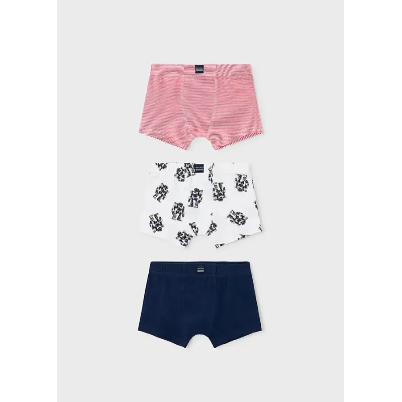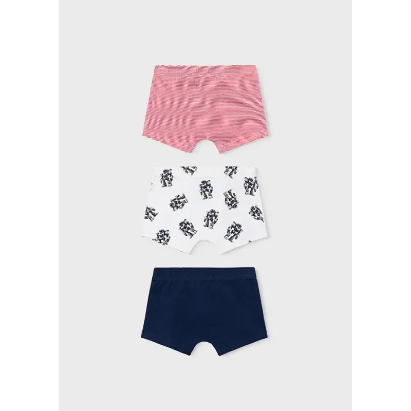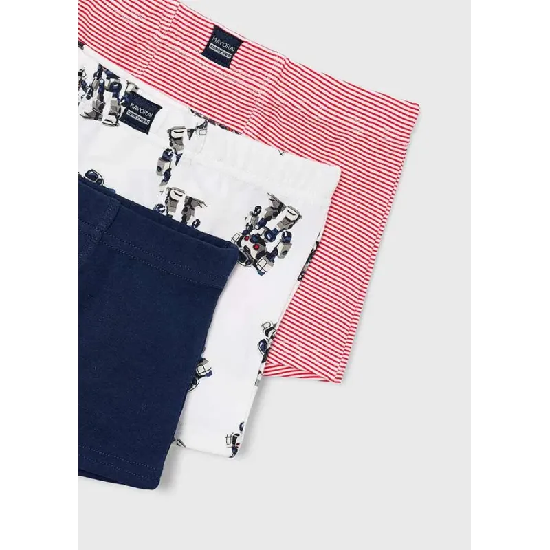 Zestaw trzech par bokserek dla chłopca. Skład: 95% Bawełna, 5% Elastan.