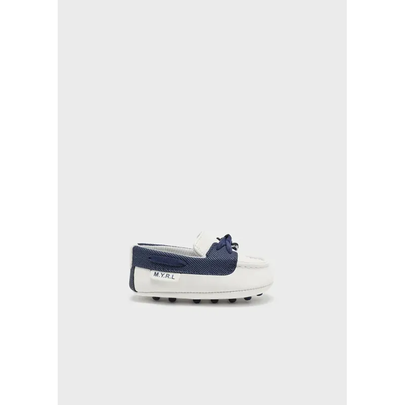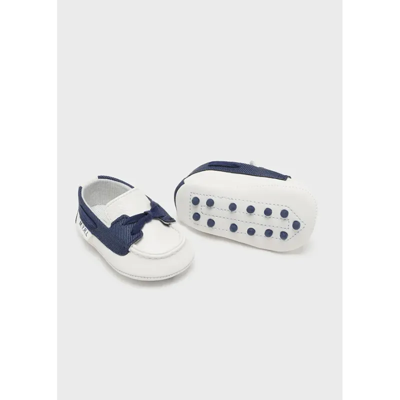 Mokasyny dla chłopca Newborn w stylu klasycznym i eleganckim. Buty ponadczasowe, idealne na specjalne okazje. Zewnętrzna część wykonana z imitacji skóry. Ozdoby: ozdobne wiązanie.