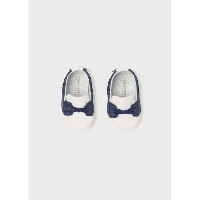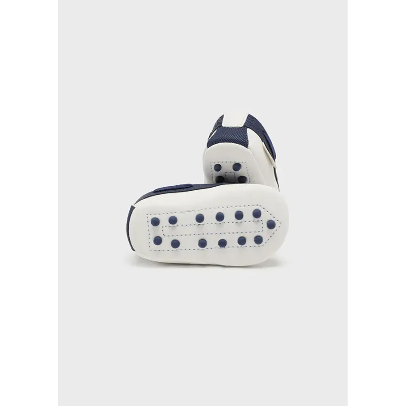 Nowoczesne buty sportowe dla noworodka chłopca, idealne aby nadać charakter casualowy Twojej stylizacji. Buty z wyściółką wewnętrzną i podeszwą wewnętrzną z oddychającej bawełny. Zewnętrzna część wykonana z połączenia materiałów.
