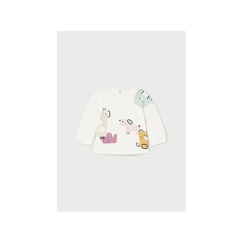 Oryginalny komplet z trzech elementów dla dziewczynki Baby. Bluza z długim bufiastym rękawem. Okrągły dekolt. Zapięcie na środku na zamek błyskawiczny. Spodnie dresowe z haftami i pasująca bluzeczka z długim rękawem.