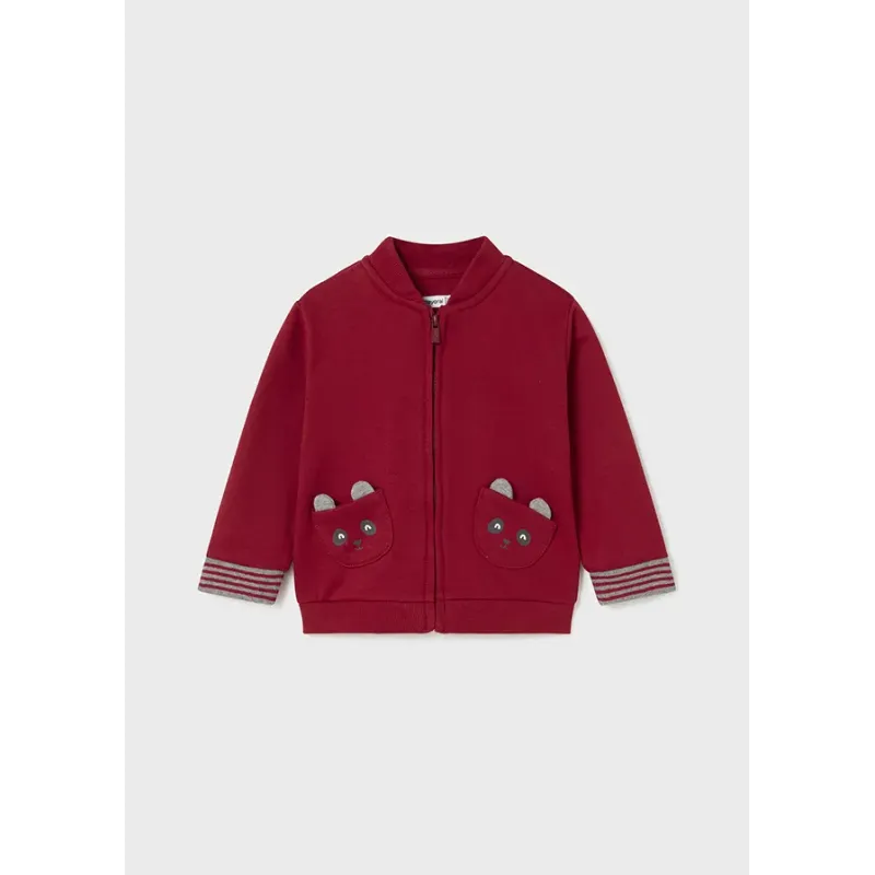 Dres dla chłopca składający się z trzech elementów: bluzy, długich sportowych spodni i pasującej koszulki. Koszulka z zapięciem na ramieniu. Dresowe spodnie z regulowaną gumką w pasie. Bluza bez kaptura zapinana na zamek. Skład: 95% Bawełna, 5% Elastan.