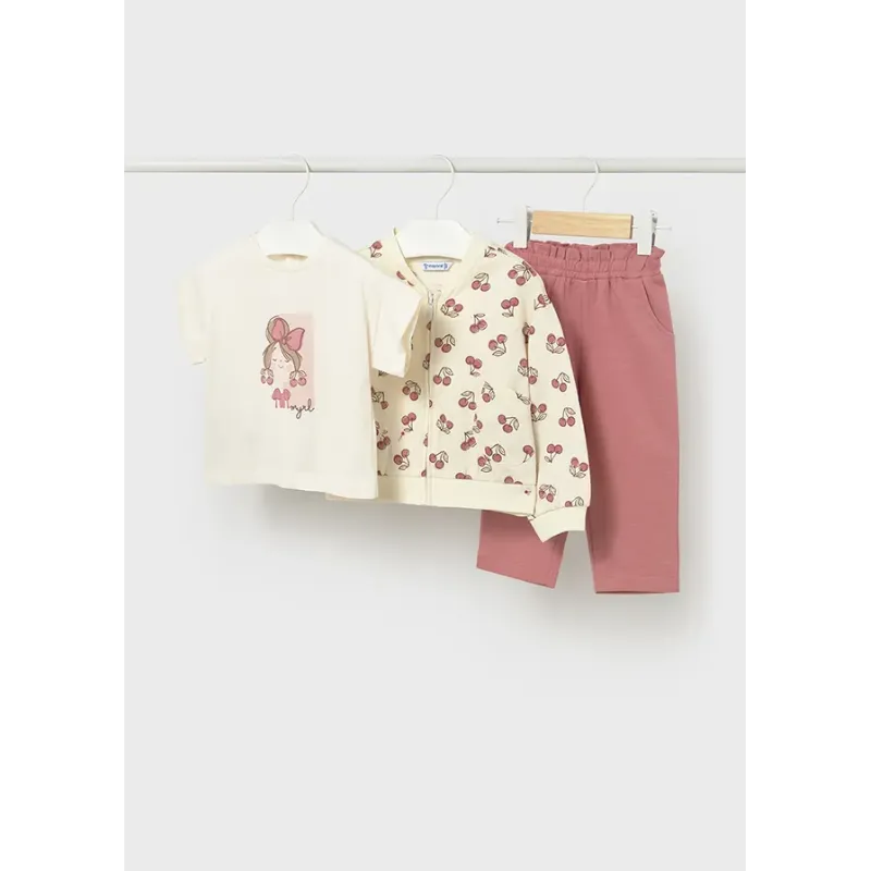 Dres 3-częściowy ECOFRIENDS dla dziewczynki składający się z bluzy z krótkim rękawem, bluzki z długim rękawem oraz spodni dresowych ze ściągaczem.