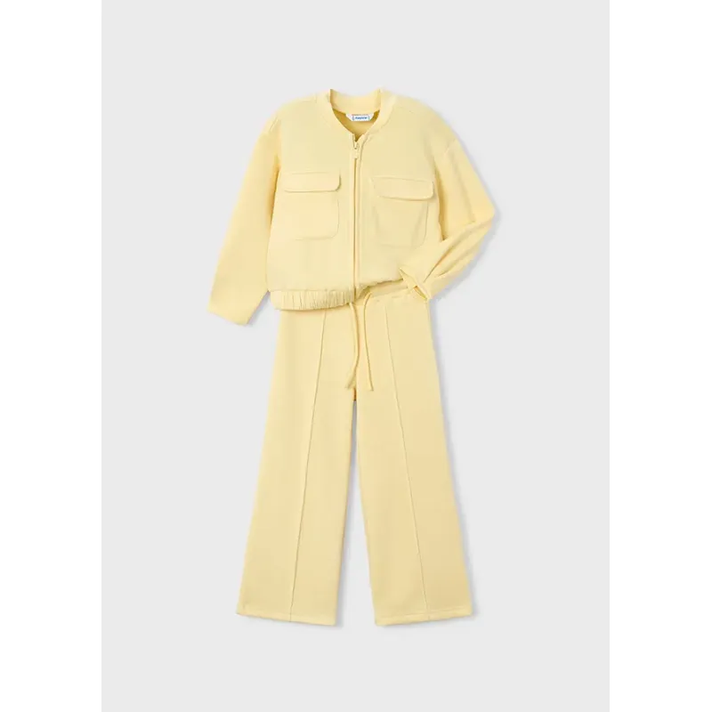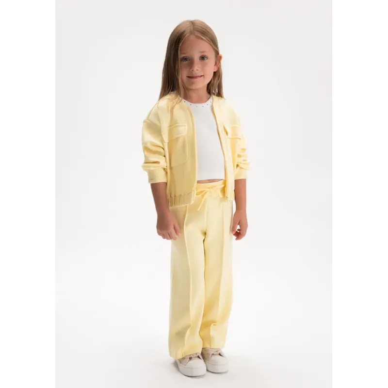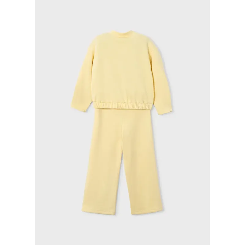 Komplet dresowy z bluzą i szerokimi spodniami dla dziewczynki. Skład: 49% Wiskoza, 44% Poliester, 7% Elastan.