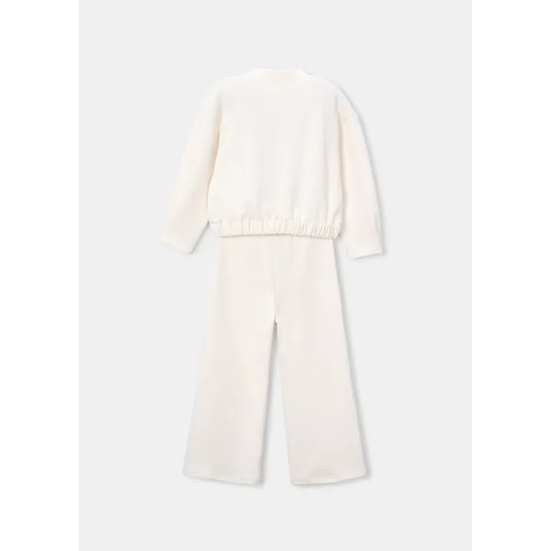 Komplet dresowy z bluzą i szerokimi spodniami dla dziewczynki. Skład: 49% Wiskoza, 44% Poliester, 7% Elastan.