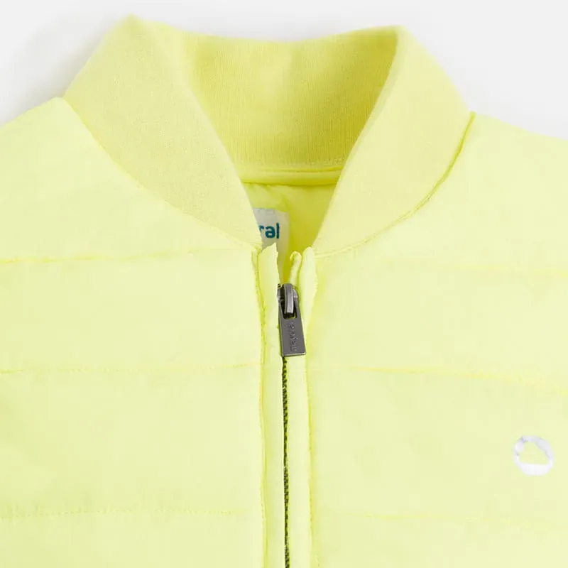 Ocieplana kamizelka z zapięciem z przodu na zamek. Model ze stójką. Lekka pikowana tkanina z ociepleniem. Skład: 100% poliester.