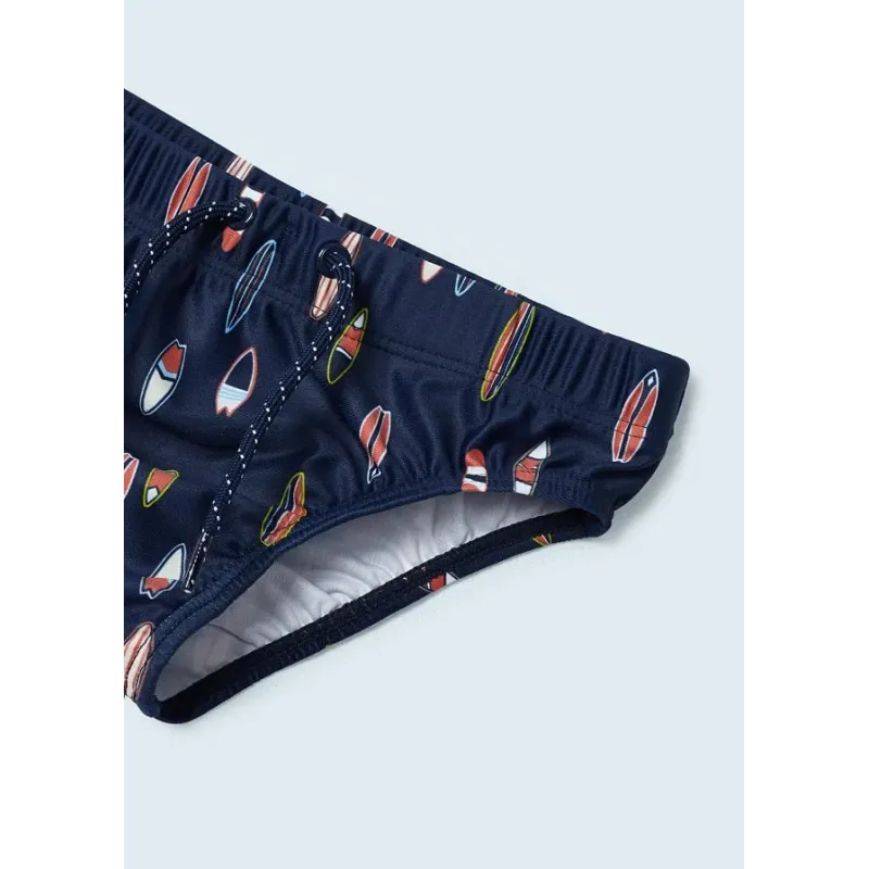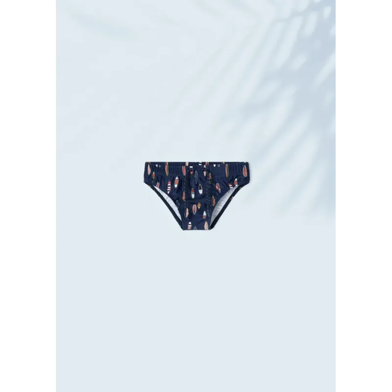 Kąpielówki slipki dla chłopca. W pasie wewnętrzny sznurek do regulacji. Projekt z nadrukiem.