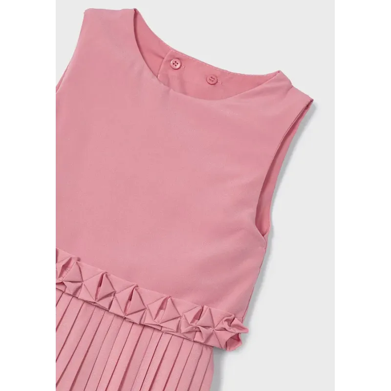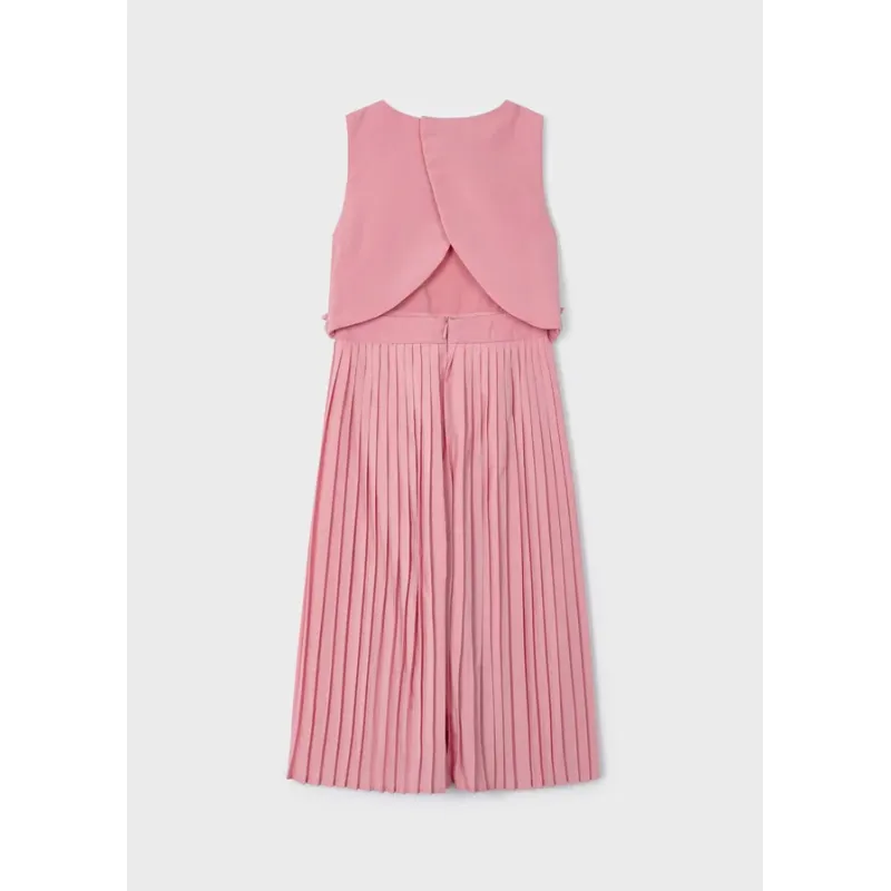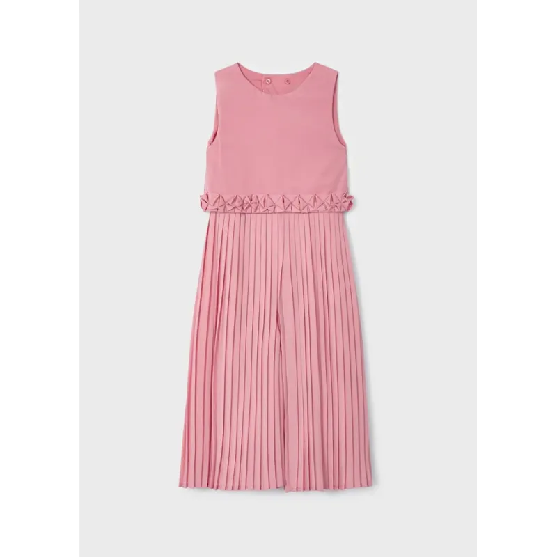 Długi kombinezon plisowany dla dziewczynki. Kombinezon z szyfonu na grubych ramiączkach z plisowanym dołem. Góra z efektowna kokardą. Zapięcie na plecach na niewidoczny zamek błyskawiczny. Skład: 100% Poliester.