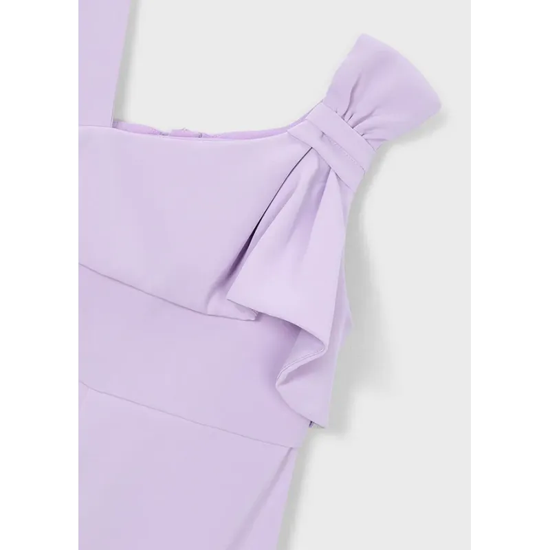 Długi kombinezon plisowany dla dziewczynki. Kombinezon z szyfonu na grubych ramiączkach z plisowanym dołem. Góra z efektowna kokardą. Zapięcie na plecach na niewidoczny zamek błyskawiczny. Skład: 100% Poliester.