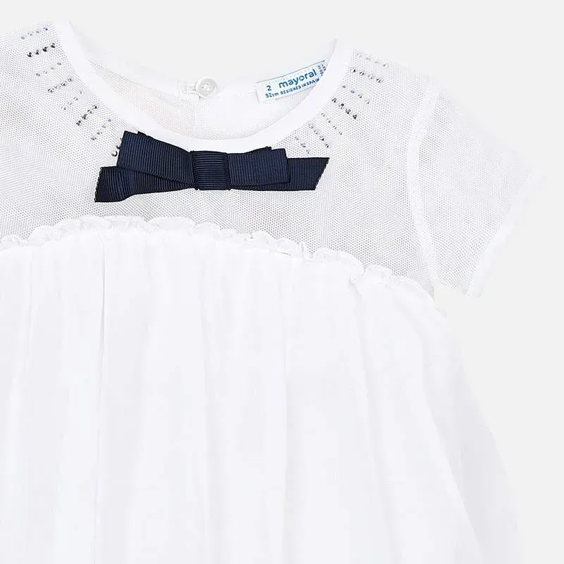 Komplet ze spodniami z plisowanej gazy dla dziewczynki. Skład: 100% Poliester.