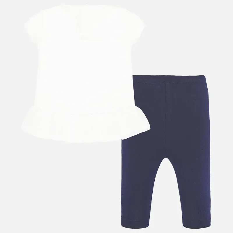 Komplet z długimi, gładkimi legginsami i koszulką z krótkim rękawkiem dla dziewczynki. Skład: 100% Bawełna.