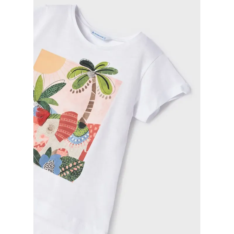 Komplet z dwiema koszulkami z krótkim rękawkiem i szortami dla dziewczynki. Skład: 100% bawełna.