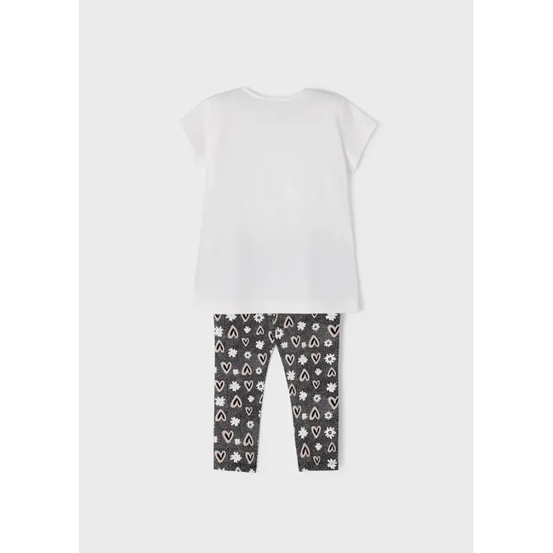 Koronkowy komplet z koszulką i szortami dla dziewczynki. Koszulka z krótkim rękawem. Zapięcie na mały guziczek na plecach. Model z gipirową kamizelką. Krótkie spodnie typu szorty z ozdobną kokardką. Koszulka: 98% Bawełna, 2% Poliester. Szorty: 85% Bawe
