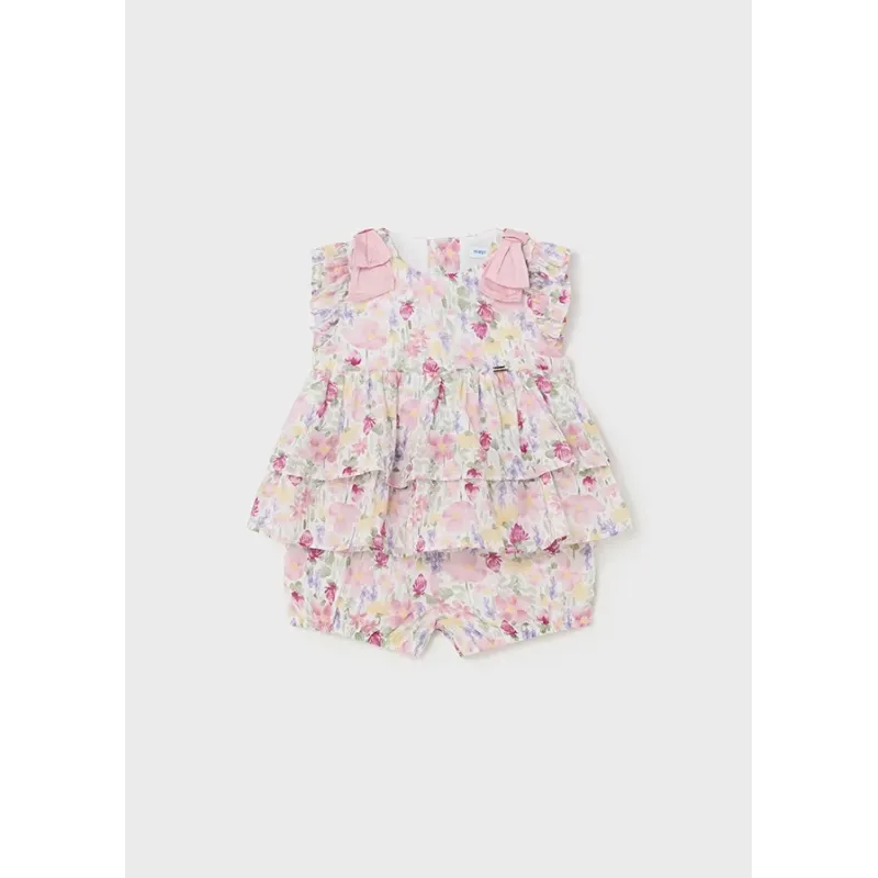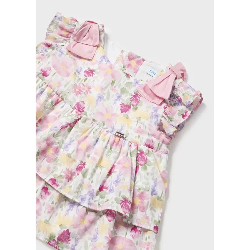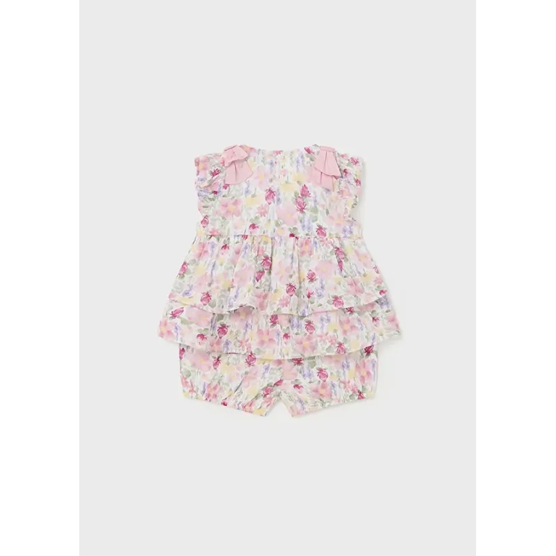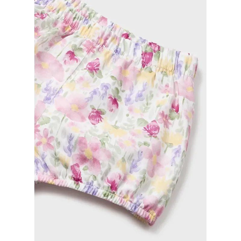 Komplet dwuczęściowy w kwiatki Better Cotton dla dziewczynki Baby, składający się z bluzeczki z krótkim rękawem oraz krótkich spodenek. Skład: 100% Bawełna