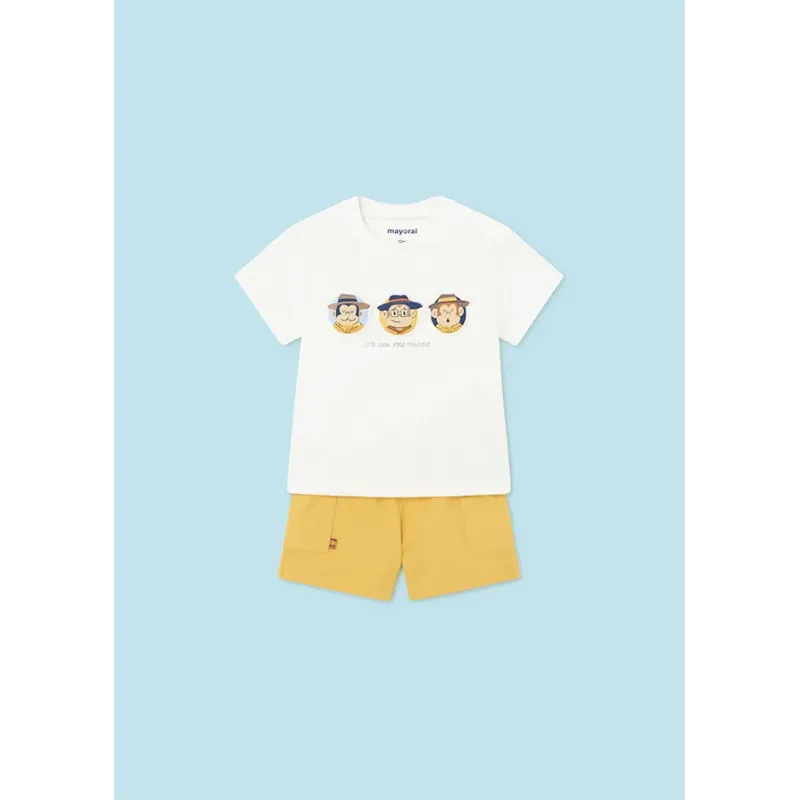 Komplet składający się z krótkich spodenek oraz koszulki z krótkim rękawkiem dla chłopca. Skład: 100% Bawełna.