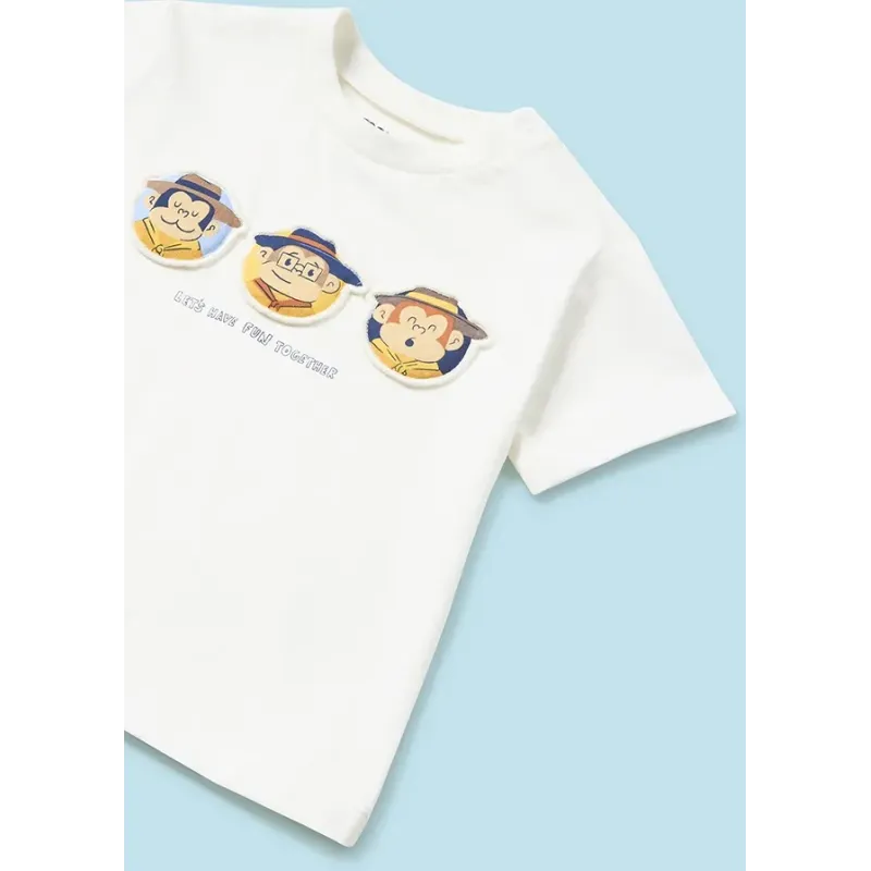 Komplet 3-częściowy z bawełny zrównoważonej dla chłopca. Komplet trzech ubranek, składający się z dwóch koszulek i dobranych krótkich spodni. Koszulka z krótkim rękawem. Okrągły dekolt. Artykuł wykonany ze 100% bawełny. Projekt z nadrukiem.