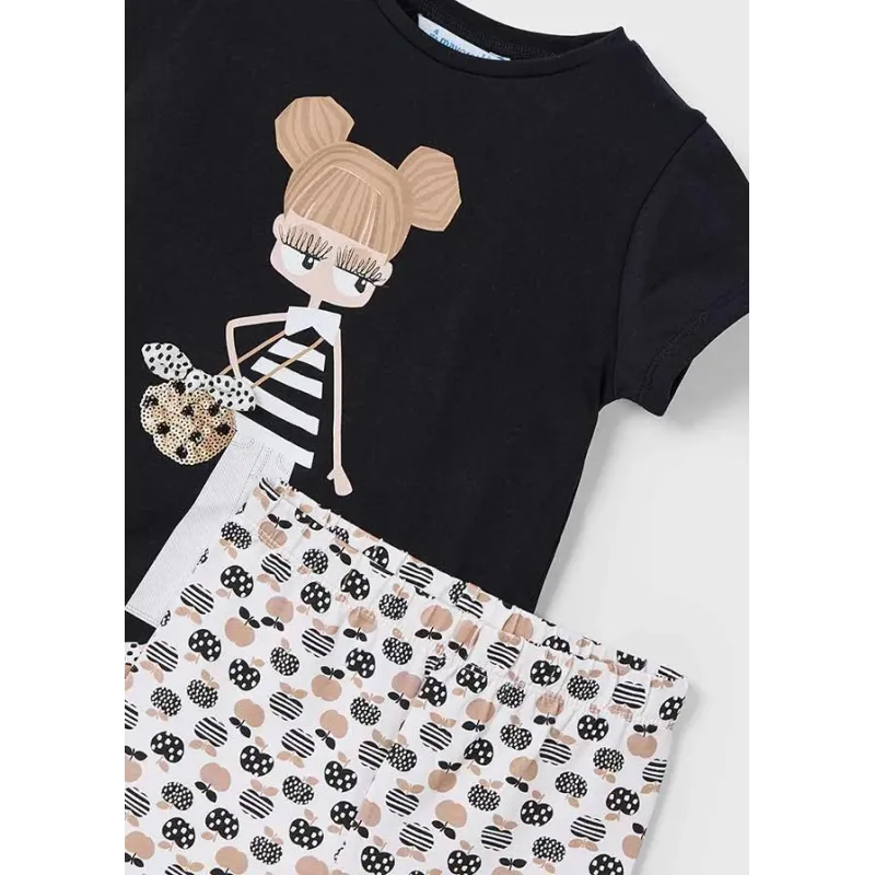 Komplet z bawełnianymi krótkimi spodenkami i koszulką z krótkim rękawkiem dla dziewczynki. Sklad: 100% Bawełna.