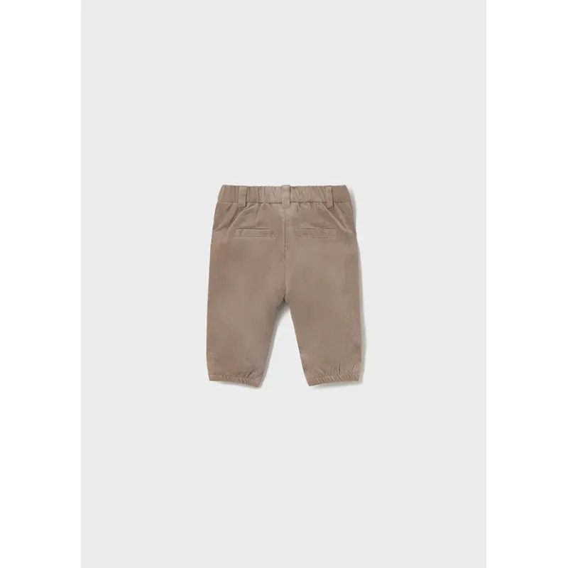 Komplet z bluzą z długim rękawem oraz spodniami dla noworodka chłopca. Okrągły dekolt. Zapięcie na małe zatrzaski na ramieniu, które ułatwiają założenie ubranka. Spodnie poszerzane w górnej części z opadającym stanem.